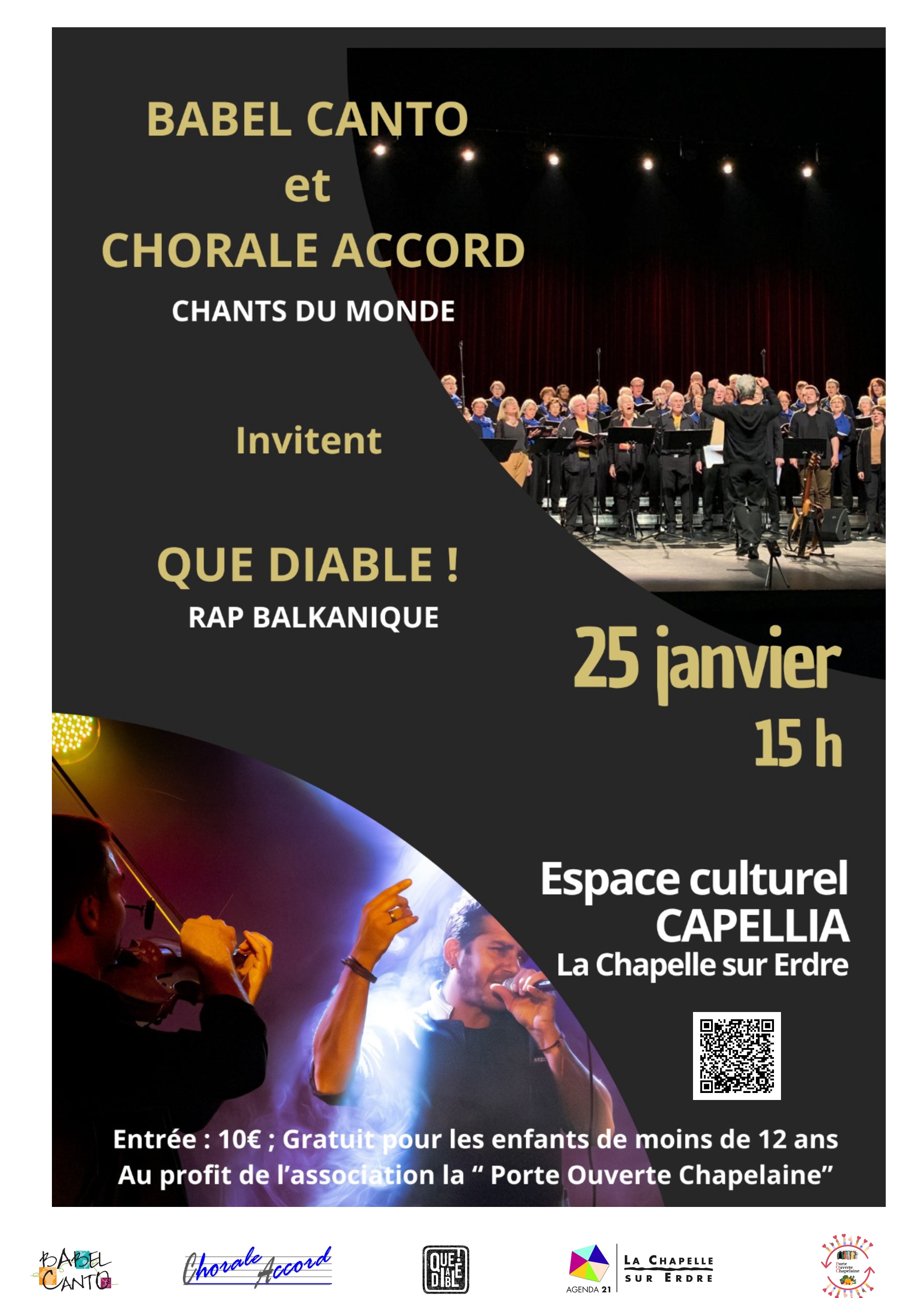 Chorale Accord et Babel Canto invitent le duo "Que Diable !" pour un concert singulier à l'espace culturel Capellia le dimanche 25 janvier 2026, à 15h. Lors de ce concert, les polyphonies du monde feront la part belle à des textes percutants sous-tendus par les accents tziganes du violon.