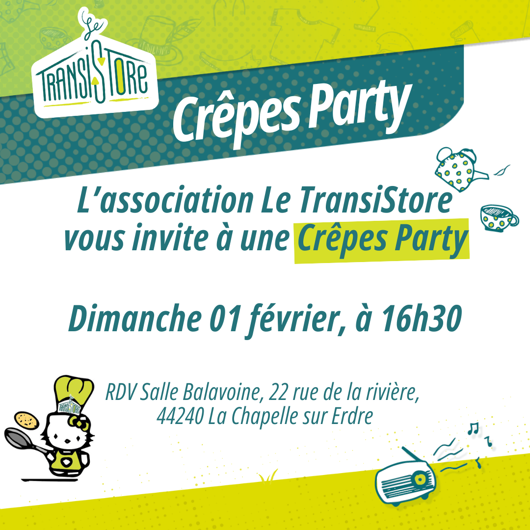 Le TransiStore organise sa traditionnelle Crêpes Party le dimanche 1er février 2026, à partir de 16h30, salle Balavoine.