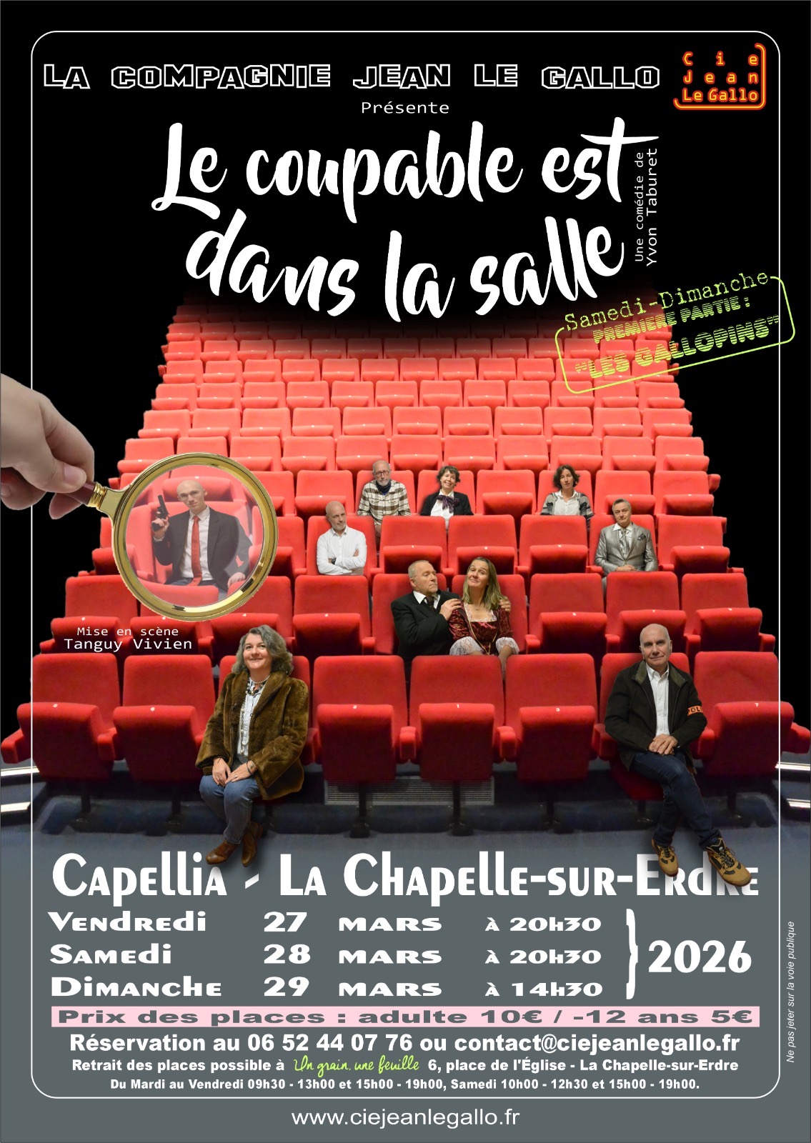 • Réservations ouvertes à partir du 24 février chez "Un grain, une feuille" (6 place de l'église), au 06 52 44 07 76, à contact@jeanlegallo.fr, via le site : ciejeanlegallo.fr